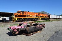 A PSAP transfer job throttles up at Blakeslee Junction in Centrailia, WA. The two GP15's in the consist were just recently repainted in the G&W orange.