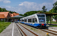A regional train from Swinoujscie is waiting for departure to Stralsund in the station of Seebad Heringsdorf. The trains of Usedomer Bäderbahn provide important touristic transport services to th... (more)