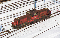 Dirty and very worn, sixaxle diesel locomotive Bm 6/6 # 18505 from 1961 (SLM, BBC, Sulzer) is still in service in the passenger car yard of Brig. The old vehicle has two Sulzer 850 HP prime movers... (more)