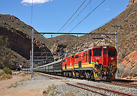 18522 leads a Rovos train out of tunnel 4 of the Hexton tunnels into Salbar siding heading towards Cape Town on another hot and dry day.