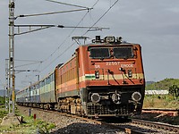 Bound for Chennai EgmoreNewly extended Anantapuri Express on its way to Chennai Egmore, from Kollam Jn passing Kappil village on a sunny evening
