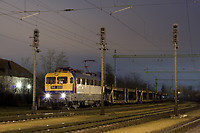 Westbound empty autorack train waits for the clear signal at Rákoshegy station.