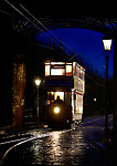 It's pouring with rain on a late winter evening, the photographer is very cold and wet. It's all worth it though as the street cobbles glow in the head lamp as Leeds tramways car 399 pauses at the... (more)