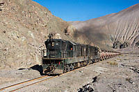 The two EMD 567 diesel engines of GR12 # 401 and 91 of Ferronor make an indescribable sound when the train with 23 empty sulphuric acid tank cars crossed the narrow valley and passes through the t... (more)
