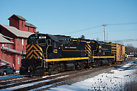 422 & LAL 420 have picked up a box car at Avon and are shoving it back up to the yard.