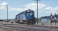 One of Guilford's ex-Conrail GP40s idles the afternoon away at Rigby, while the ancient roundhouse and turntable sit dormant in the background.