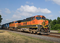 BNSF 1038 is the lead unit in a five locomotive lashup on CSX train symbol Q380-05 as it rumbles eastward on the Short Line