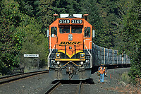 With her Burlington Northern treatment and herald still intact on the long hood, BNSF 3149, one of 53 remaining ex-BN GP50s, leads a light power movement back westward after interchanging a bareta... (more)