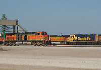 A trio of BNSF, Santa Fe and BN power take up space on the fueling track in the Pueblo yard as the DENKCK retrieves a cut of loaded cement hoppers before it more)