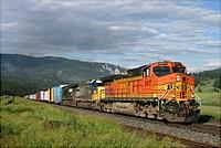A westbound intermodal train was digging in for the climb up to Yampai as it passed West Pica, AZ on Sept. 19, 2004. The water tanks to the left remain from the time that this was a water station... (more)