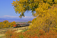 On a nice fall afternoon the trees make a nice frame for a loaded coal train as they grind uphill towards Palmer Lake