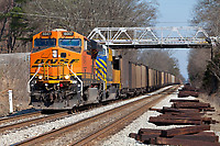 Empty NS coal train 735-18 is running over CSX trackage rights as Z70319 with runthrough BNSF power. The train will get onto home trackage just behind me.