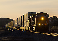 With the setting sun shinning only a few more minutes of light left, an eastbound Z-train races across the Arizona Divide at Bellemont.