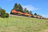 A new ACe leads a southbound BNSF coal train through the "sag" a couple miles north of Palmer Lake