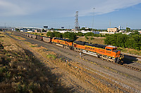 A BNSF coal load charges up the slight grade south of Tower 55.