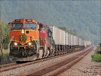 A trio of fairly new BNSF Dash 9s in Heritage I paint idle on the sleeper track at Wenatchee, WA in early morning light. These units were quite prominent in the summer of 1997, contrasting nicely ... (more)