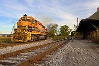 The Buffalo & Pittsburgh's WAER climbs the grade as it departs Erie, Pennsylvania with a quartet of EMD's. Fall color is still clinging to trees despite the first snowfall of the year covering the... (more)