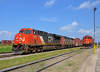 Revenue and non-revenue trains at Joffre. Three trains are seen at Joffre during the CN family day. In the middle is CN 309 (making its double) and at far left is CN 120 stopped for a crew ... (more)