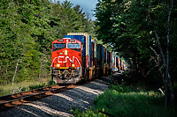 A beautiful late summer day as an extra stack train fly's past milepost 206 on the Neenah Sub