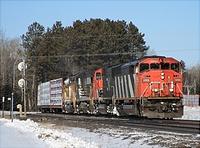 CN's quadruple nickel unit leads M395 west through Frankfort. Very unusual to see a CN barn solo on a road freight!