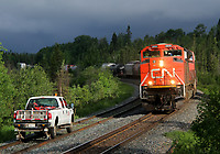 188 comes East through White in the late evening with a colorful lashup, including a CN leader, and BCOL trailing.