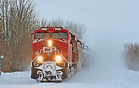 Five miles from the Canada/U.S border, Canadian Pacific ethanol train 650 is heading south creating its blizzard in its wake on a snowy February morning.