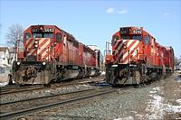 A couple of MoW section men overlook the diamond at West Toronto as CP's T42 (1st Emery) approaches from the west out of Lambton Yard bound for the connecting track to the MacTier Sub.