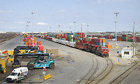 Not too many railroads you will see a switch engine splitting a pair of ES44. Here 281 blast down the road with just that kind of odd consist enroute to Portage for next crew change.