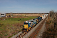 CSX westbound passes through the farmland along the CSX ex B&O Chicago line.