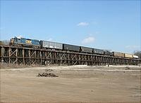 New Omnitrax operation, Alabama and Tennessee, on the trestle approach to the Coosa River Bridge.
