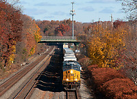 CSX Buffalo, NY to East Brookfield, MA auto rack train M264 is seen passing Milepost 126 in Chester on a spectacular October afternoon.