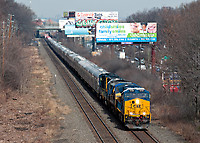 CSX leads one of the last Ringling Brothers and Barnum & Bailey Circus trains westbound through Langhorne, PA, under a tunnel of catenary on the former Reading right of way. T... (more)