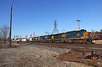 An eastbound freight with CSX power rolls through CP 502 on the NS Chicago Line.