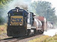 Various locomotives, including a visitor from out west and an older DASH7 sit on the ready tracks awaiting their next assignment.