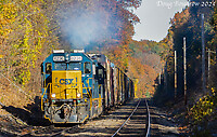 CSX 6236 comes back to Middleboro light power after making an unusual daylight run on commuter territory to Brockton. The fall colors are looking great as the train passes under Plymouth Street.