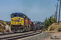 Emerging from Cache Creek Canyon an eastbound Union Pacific manifest conforms to the final slope of the Tehachapi Range before dropping down into the Mojave Desert.