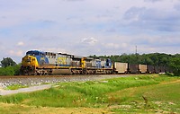 Brilliant fall colors adorned the hillsides of western PA, while CSXT Q135-14 lent color of its own on the westbound trip through the Allegheny Mountains. Power for the train was AC60 645 and SD... (more)