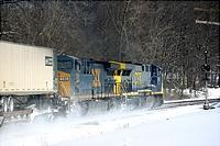A former "Big Six", de-rated from 6,000 to 4,400 HP in an effort to conserve fuel, leads southbound Q453 through Folkston, GA. The train went into emergency a few miles north on the Jesu... (more)