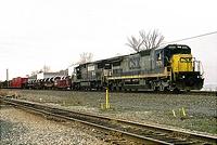 A CSX manifest heads west behind a trio of hood units