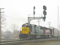 NB operating down the Coal River Subdivision crosses Rock Creek in a light rain.