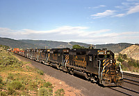 Westbound DRGW stack train descending from Soldier Summit at Gilluly