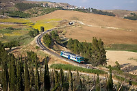 Railway Line, Agrigento - Palermo. Passengers train from Palermo to Agrigento (Sicily)