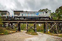 Lhoist North America's road Train from Crab Orchard to Rockwood, TN., passes through Ozone, TN., as they cross over one of several trestles along the former Tennessee Central main on their way ba... (more)