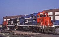 GTW 6417 (former DT&I 417) sits at the diesel shop in Battle Creek with a former P&LE GP38-2 still in black paint and a former DT&I unit that has not been repainted.