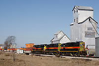 All three long hood forward! Probably a rare sight to see all three units running long hood forward. GP38-2 707 is leading the CBBI through Downey, Iowa.