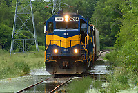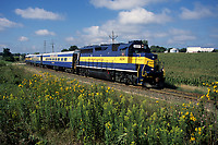 The ICE local returns from Janesville with 4 cars, tiptoeing through the water over the rail at MP 41. The photographer seeks refuge at the signal box. It was decided to run the train to Janesvi... (more)