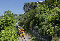 KYLE 3204 leads the southbound MNA local as they pass a bluff along the White River in Northern Arkansas.