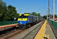 On the evening of June 1, 2025, Long Island Rail Road train 6017, led by EMD DM30AC 517, races past the former Water Mill station (also known as Watermill) ... (more)