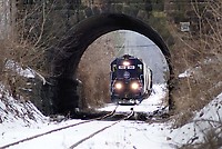 After following westbound freight POSE (Portland, ME - Selkirk, NY) the engineer on westbound POED (Portland, ME – East Deerfield, MA) pictured here gives it the last notch accelerating his trai... (more)