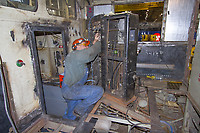 Electrician Ben Hampson rewires the control stand of former Wisconsin Central No. 3025. The GP40 was acquired by MRL when CEECO (Coast Engine and Equipment Co.) closed in 2009. It sat indoors in L... (more)